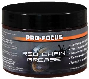 Professioneel smeermiddel nu voor de consument leverbaar: Pro-Focus Red Chain Grease.