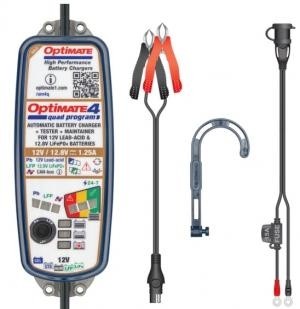 De OptiMate 4 Quad Program Gold Series van TecMate is een 9-staps 12V / 12,8V 1,25A afgedichte accu besparende oplader en onderhouder. Hij zorgt voor het ultieme accu onderhoud voor de hoogwaardige 12V / 12,8V-accu in jouw avontuurlijke, toer-, cruiser- of prestatiemotorfiets, ATV, Side by Side en waterscooters – het is 's werelds meest geavanceerde acculader voor powersports!